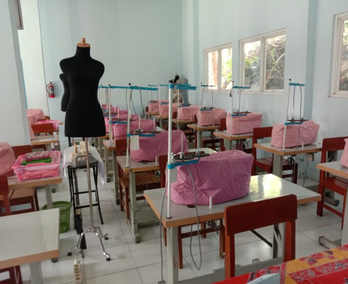 Fungsi Ruang Praktik Busana (Laboratorium Jahit) di SMK Assa'idiyah 2 Kudus : 1. Pusat Pembelajaran Keterampilan Inti (Hard Skills) Praktik Desain dan Pola: Sebagai tempat utama untuk membuat desain busana (sketsa) dan mengaplikasikannya ke dalam bentuk pola dasar, pecah pola, hingga pola jadi (grading). Penguasaan Teknik Menjahit: Tempat pelatihan intensif pengoperasian berbagai jenis mesin jahit (manual, masinal/industri, overlock, cover stitch) serta teknik menjahit manual dan konstruksi busana. Finishing dan Quality Control: Siswa belajar teknik penyelesaian (finishing) busana yang rapi, melakukan pemeriksaan kualitas (quality control), dan melakukan fitting (penyesuaian). 2. Simulasi Lingkungan Kerja Profesional Budaya Industri: Ruangan ini dirancang untuk meniru alur kerja dan tata letak (layout) dapur jahit atau butik/garmen profesional, termasuk pentingnya manajemen waktu, ketelitian, dan efisiensi. Keselamatan dan Kesehatan Kerja (K3): Melatih siswa untuk bekerja sesuai standar K3, termasuk penggunaan dan perawatan peralatan yang aman. Penggunaan Peralatan Standar: Siswa menjadi mahir menggunakan peralatan standar industri, seperti meja potong besar, alat konstruksi pola yang lengkap, dan mesin-mesin jahit berkecepatan tinggi (high speed). 3. Pengembangan Kreativitas dan Inovasi Fesyen Eksplorasi Material: Menjadi tempat siswa bereksperimen dengan berbagai jenis bahan, tekstil, dan aksesoris untuk menghasilkan produk busana yang unik dan inovatif. Draping dan Plating: Siswa dapat mempraktikkan teknik draping (membuat pola langsung di atas boneka jahit/manekin) untuk menghasilkan desain tiga dimensi yang kompleks. Portofolio Karya: Ruangan ini adalah tempat lahirnya produk-produk karya siswa yang akan menjadi portofolio mereka saat melamar kerja atau melanjutkan usaha. 4. Wadah Kewirausahaan (Teaching Factory) Produksi Pesanan: Dalam model Teaching Factory (TeFa), ruang praktik ini berfungsi sebagai unit produksi mini yang menerima pesanan nyata dari konsumen atau pihak luar. Manajemen Produksi: Siswa belajar menghitung biaya produksi (costing), mengelola bahan baku (inventory), dan memenuhi target produksi sesuai pesanan. Promosi dan Peragaan: Ruang praktik sering kali dilengkapi dengan sub-ruang untuk peragaan busana, memungkinkan siswa memamerkan karya yang mereka buat dan melatih keterampilan promosi. 5. Sarana Uji Kompetensi Digunakan sebagai lokasi utama untuk pelaksanaan Ujian Kompetensi Keahlian (UKK) atau uji sertifikasi profesi di bidang busana, di mana siswa harus membuat produk busana lengkap sesuai standar industri.