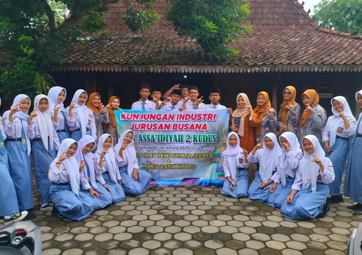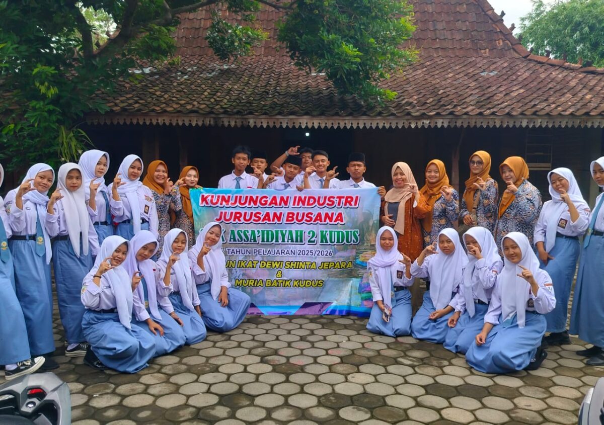 SMK Assa'idiyah 2 Kudus melakukan kunjungan industri ke Kain Tenun Troso Dewi Sinta yang terletak di kota Jepara dan di Muria Batik Kudus yang terletak di kota Kudus. Dilaksanakannya Kunjungan Industri memiliki beberapa tujuan dan manfaat sebagai berikut : A. Tujuan Kunjungan Industri Tujuan utama kunjungan industri bagi siswa Busana adalah: 1. Memahami Proses Produksi Nyata: Siswa dapat melihat secara langsung seluruh alur kerja di industri konveksi atau fashion, mulai dari proses desain, pemotongan, penjahitan, finishing, hingga pengepakan produk jadi. 2. Melihat Penerapan Teknologi: Mengenal dan mengetahui penggunaan alat-alat canggih dan teknologi terkini yang digunakan dalam proses produksi busana di industri. 3. Mencocokkan Teori dan Praktik: Menghubungkan dan membandingkan ilmu dan keterampilan yang dipelajari di sekolah dengan aplikasi praktis di dunia kerja. 4. Mendapatkan Wawasan Bisnis: Mengetahui tentang manajemen operasional, strategi pemasaran, dan tantangan bisnis di industri tata busana. 5. Meningkatkan Minat Belajar: Memberikan motivasi dan inspirasi kepada siswa untuk lebih serius dalam mengembangkan keterampilan dan pengetahuan di bidang busana. B. Manfaat Kunjungan Industri Manfaat yang didapatkan siswa Busana dari kegiatan ini meliputi: 1. Pengalaman Langsung Dunia Kerja: Siswa merasakan secara langsung atmosfer dan aktivitas kerja sehari-hari di industri, yang tidak didapatkan di kelas. 2. Optimasi Keterampilan (Skills): Tumbuh semangat untuk meningkatkan keterampilan (skills) yang dimiliki agar lebih sesuai dengan standar dan kebutuhan industri. 3. Penambahan Ilmu dan Wawasan Baru: Memperoleh informasi baru dari praktisi industri mengenai tren, inovasi, dan cara kerja yang profesional. 4. Peningkatan Disiplin dan Attitude: Belajar tentang budaya kerja, kedisiplinan, tata tertib, dan attitude profesional yang dituntut di dunia industri. 5. Gambaran Karier Masa Depan: Memperoleh gambaran jelas mengenai jenis-jenis pekerjaan dan peluang karier yang tersedia setelah lulus. Kesimpulannya, kunjungan industri ini berfungsi sebagai jembatan antara lingkungan akademik sekolah ke realitas profesional di industri fashion dan busana.