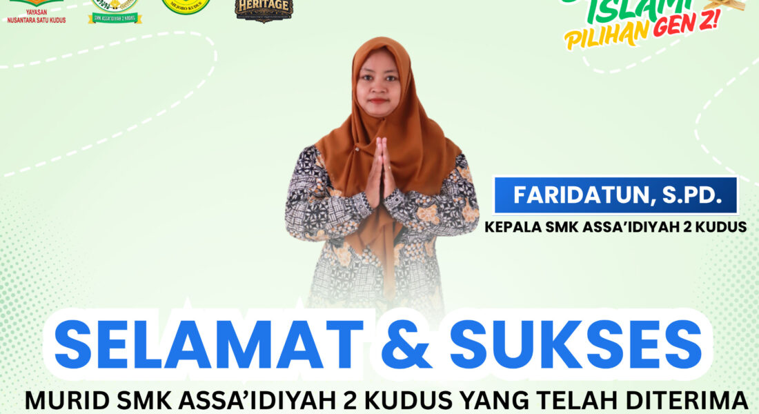 Kami, Kepala Sekolah, Dewan Guru, dan Staf SMK Assa’idiyah 2 Kudus, turut bangga dan mendoakan semoga perjalanan pendidikan selanjutnya diberikan kelancaran dan kesuksesan.